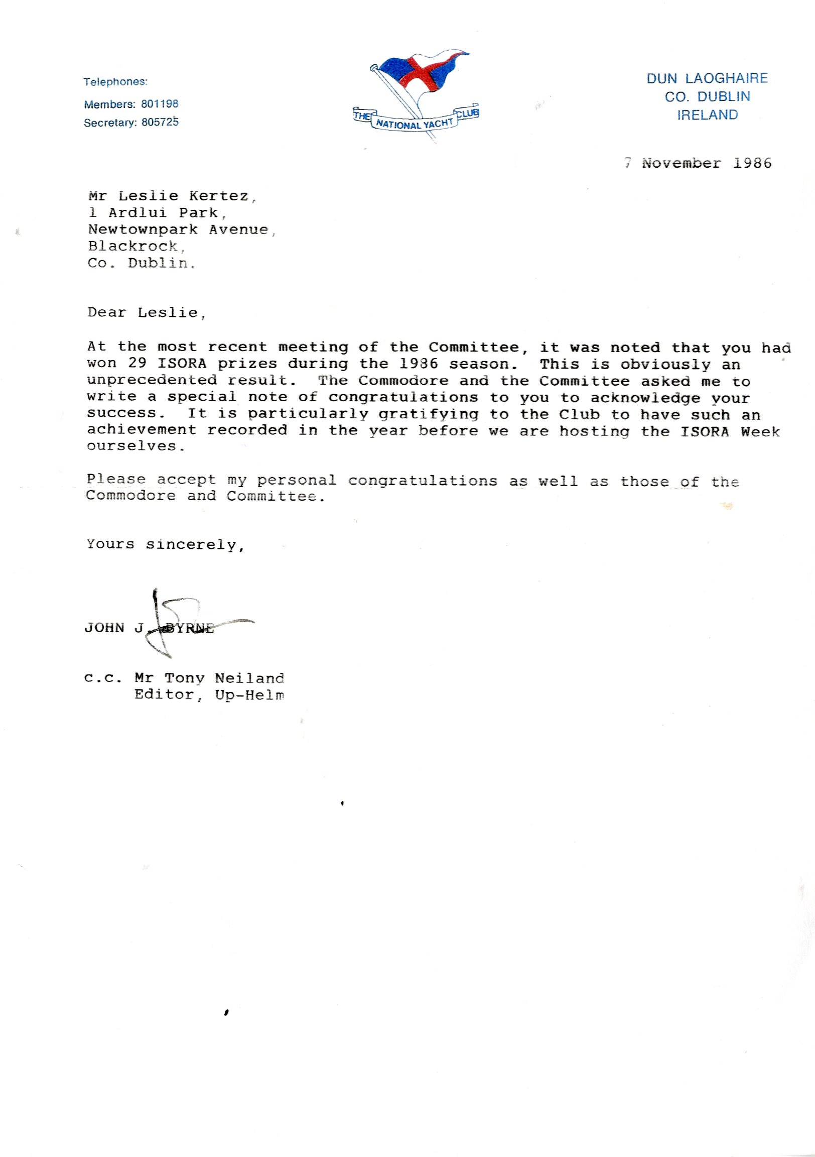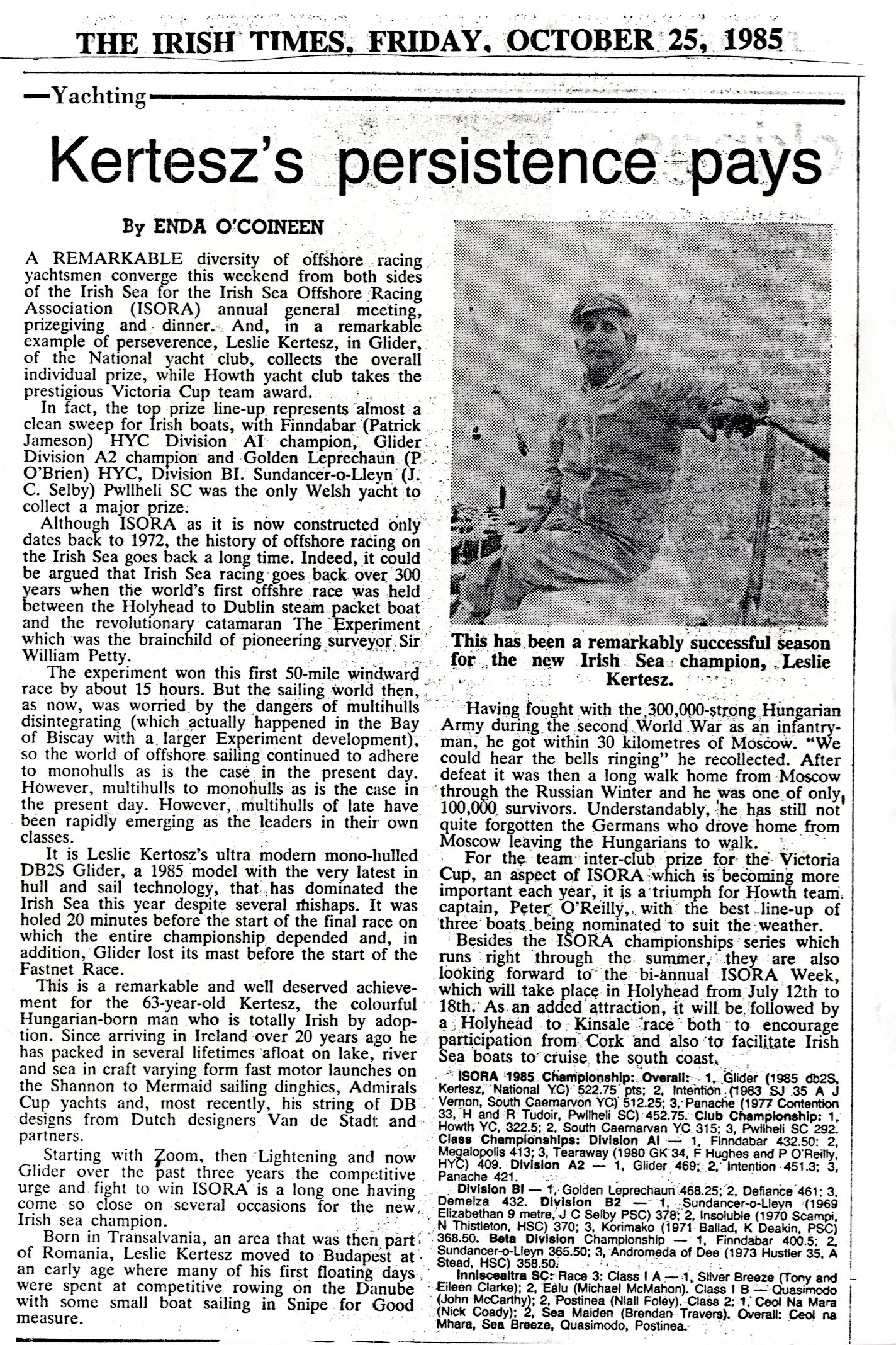 FacebooktwitterredditpinterestlinkedintumblrmailMOMENTS FROM THE PAST. Leslie Kertez was a well known leader in Offshore Sailing over 30 years ago. He sailed from the NYC and represented the Club, winning many trophies for offshore racing. The photographs and press cuttings below were presented to the Club by his daughter Alex, and they will bring back the great memories of when offshore racing was at its highest. Enjoy, Peter Ryan Commodore NYC & Chairman of ISORA