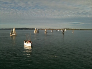 This decision turned out to be inspired. The little wind there was there at the start was from the north-west so the first leg was a beat to the waypoint. Those boats who took the north leg from the start shot away in the tide while the others appeared to remain static in Holyhead Bay. The forecast was for the wind to veer around to the south later.