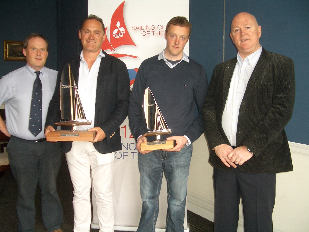 Liam Coyne and Brian Flahive, 2-handed winners of the lynx metmAsts Pwllheli to Wicklow Race last Saturday were presented with the Perpetual Lynx metmAsts Offshore Trophy at the NYC yesterday.