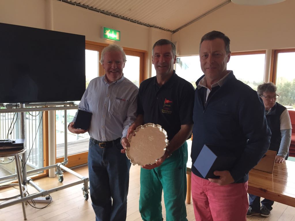Back to the racing, despite the short races it was amazing that places changes so regularly, just when you thought you were in a good position the wind gods decided to come in from the other side, in the last race when Mulvin need to finish ahead he was last on lap 1 with Roy and Andy leading and by the finish he had steered the boat into second place with Rory behind him, enough to take the title!