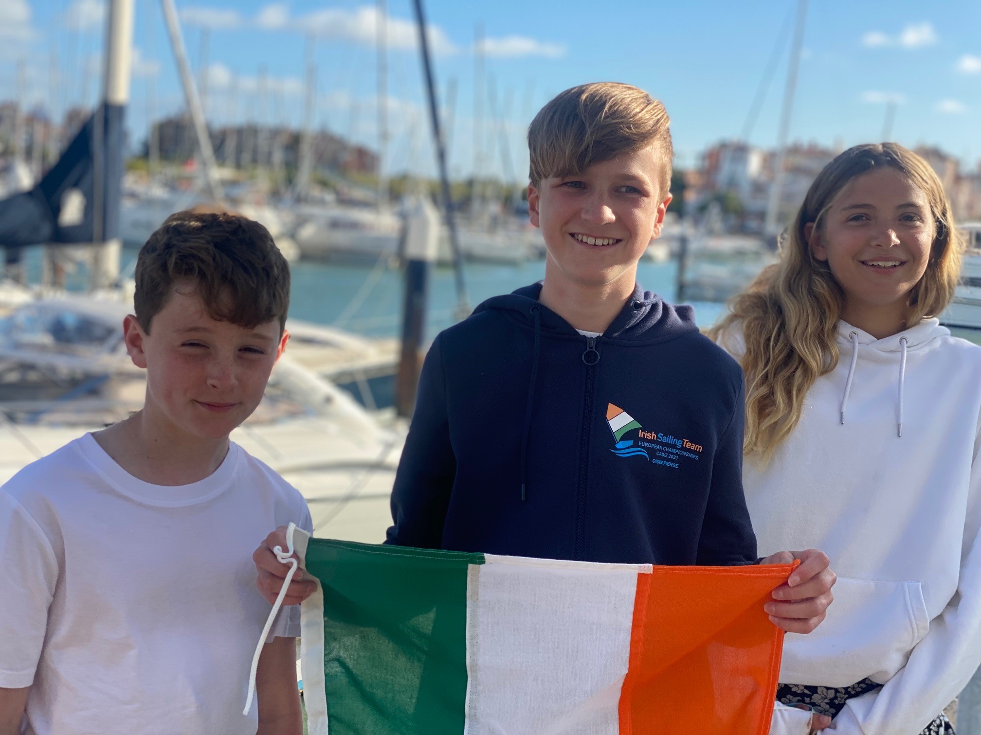 Below: Pictured from left to right representing Ireland at the European Optimist Championships 2021 in Cadiz, Spain are