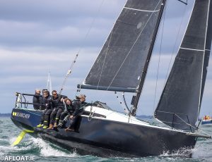 ISORA campaigners Searcher (Pete Smyth) and John O’Gorman’s Hot Cookie enjoyed 10-15 knots north-westerlies for a fast reach from Dun Laoghaire Harbour.