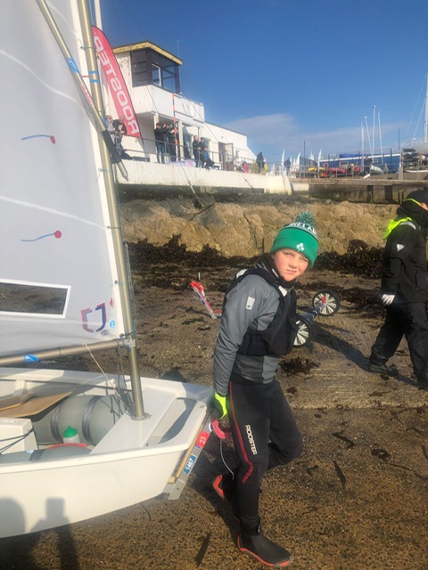 The results of the Optimist youth Nationals  were IODAI trials for team selection. Our Optimist sailors showed great resilience and courage with the very mixed conditions and at times enormous waves. Theo Madigan, Felix Dion, Hannah Walsh, James Gorman, Louise Hanley and Lucas Browne sailed the 4 day event and had great individual performances with both Felix Dion and Louise Hanley getting 3rd place in races 1 and 10 and Felix getting 5th place in the last race. The NYC were also joined by Grace Keating from LDYC and she really added to our Optimist team.