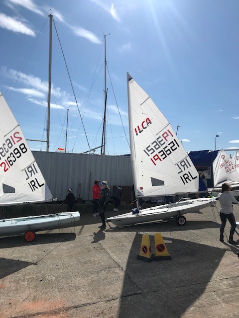 The Irish Sailing Youth National Championships were hosted at the Ballyholme Yacht Club from 22nd  to the 24th April in sunny but very mixed sailing conditions, with the third day in particular being very challenging. This event is special as it gives the young sailors the opportunity to see the various pathways they may take after the Optimist Fleet. On day 2 the Optimist and ILCA6 classes launched at the same time in very challenging conditions with both classes literally sailing on crests of waves as they sailed out into Belfast Lough.